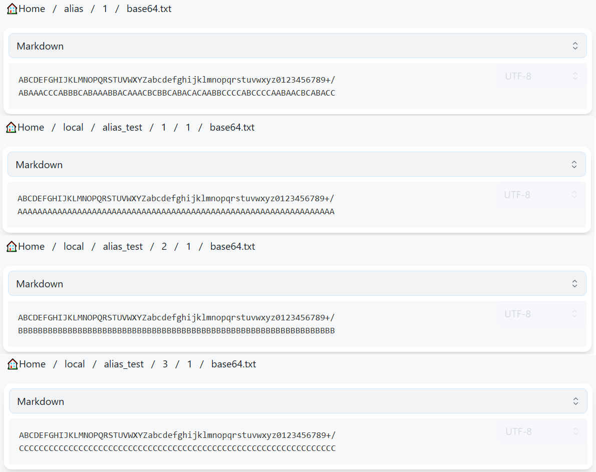 Different types of hash values returned by backend drivers will not lead to misjudgment. For example, if Driver 1 returns the MD5 of a file and Driver 2 returns the SHA1 of the file, even with this option enabled, the Alias will not consider either path from Driver 1 or Driver 2 invalid simply because the file’s MD5 and SHA1 are not equal.